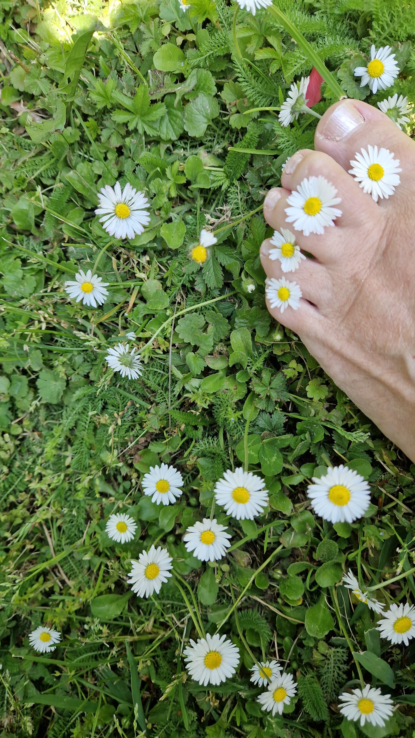 Das Gänseblümchen begleitet uns nun durch die nächsten 12 Monate. Es steht für Einfachheit, Wiederaufleben bzw. aufstehen und hat tiefe Wurzeln. Ein kleines, zartes Blümchenwesen, das Stabilität schenkt, selbst wenn der Wind stark weht oder ein Fuß darauf steht. “Wenn alle auf einem herumtrampeln”.